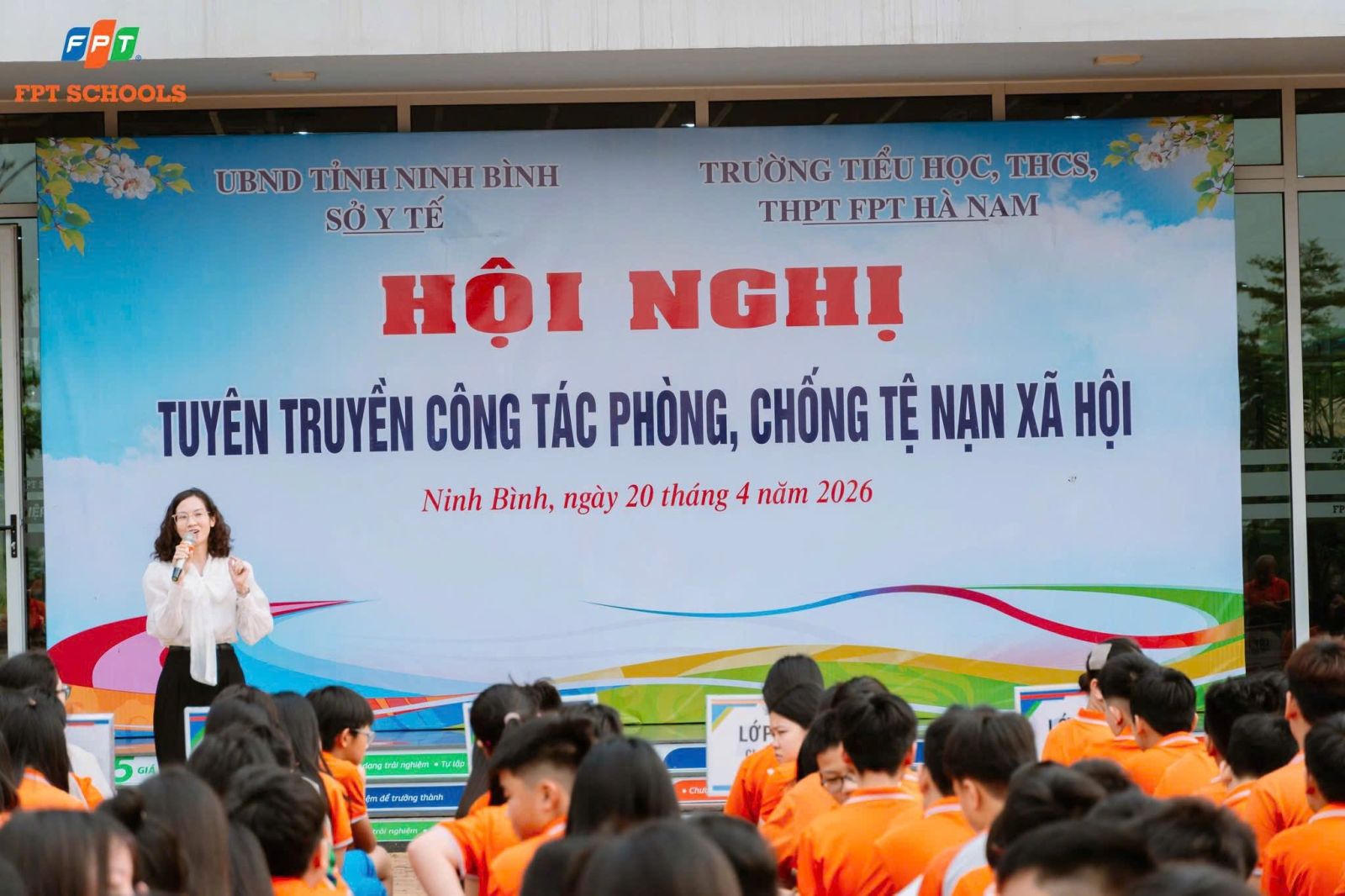 Thực hiện Kế hoạch số 91/KH-UBND ngày 02/10/2025 của UBND tỉnh Ninh Bình và Kế hoạch số 34/KH-SYT ngày 13/3/2026 của Sở Y tế tỉnh Ninh Bình về công tác phòng, chống mại dâm năm 2026, ngày 20/4/2026, Sở Y tế tỉnh Ninh Bình đã phối hợp với Trường Tiểu học, THCS và THPT FPT Hà Nam tổ chức hoạt động truyền thông, tuyên truyền dành cho học sinh toàn trường.