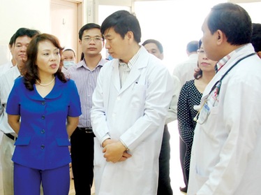 | Bộ trưởng Bộ Y tế Nguyễn Thị Kim Tiến khảo sát quy trình KCB tại BV Cấp cứu Trưng Vương TP. Hồ Chí Minh. |